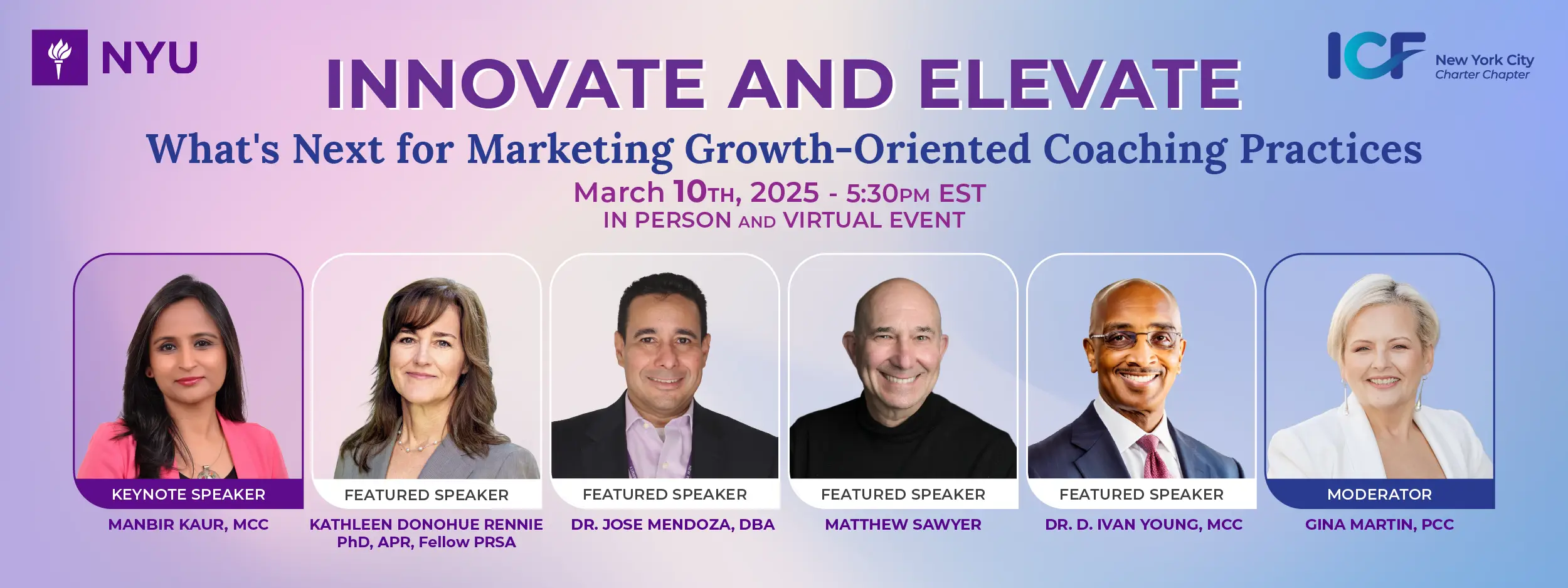Join us for Innovate and Elevate: What’s Next for Marketing Growth-Oriented Coaching Practices, an inspiring hybrid event hosted by the ICF NYC Chapter and NYU SPS. This groundbreaking experience brings together forward-thinking coaches, marketers, and business professionals to explore innovative marketing strategies and the future of personal branding in a rapidly evolving landscape.